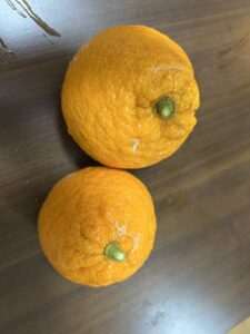 • みかん:2個(約180g) 放置していたのに、みずみずしくて美味しいのができました。これは植物の自力に感謝です。