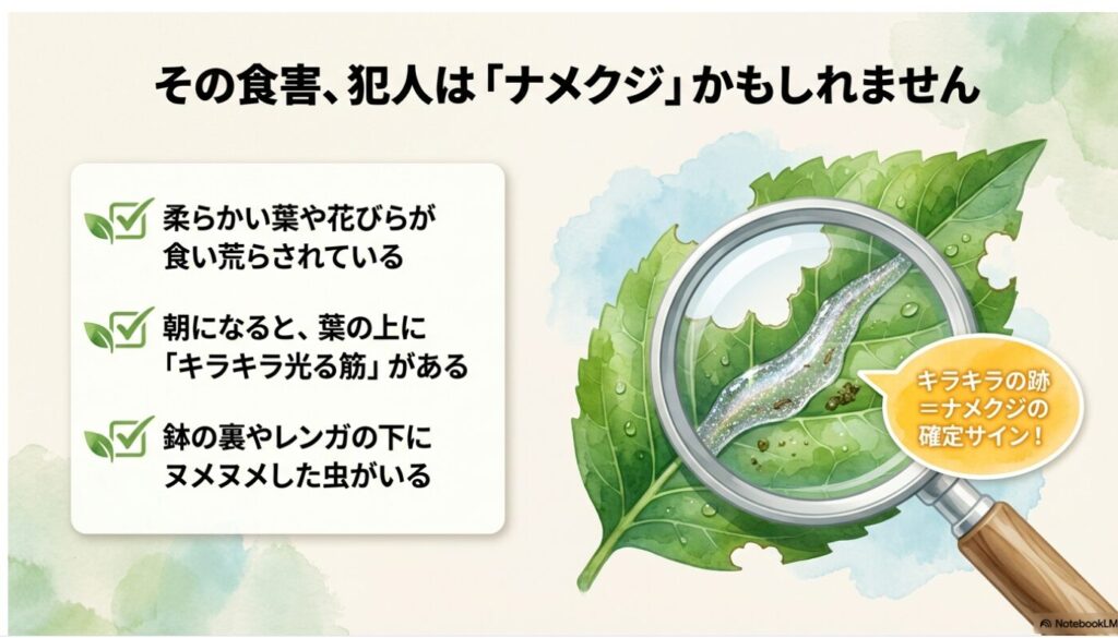 犯人は、夜中にひっそりと活動するナメクジです。