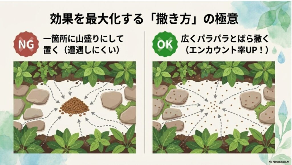 忙しい家庭菜園では、撒くだけで勝手にいなくなる方法が最も現実的です。