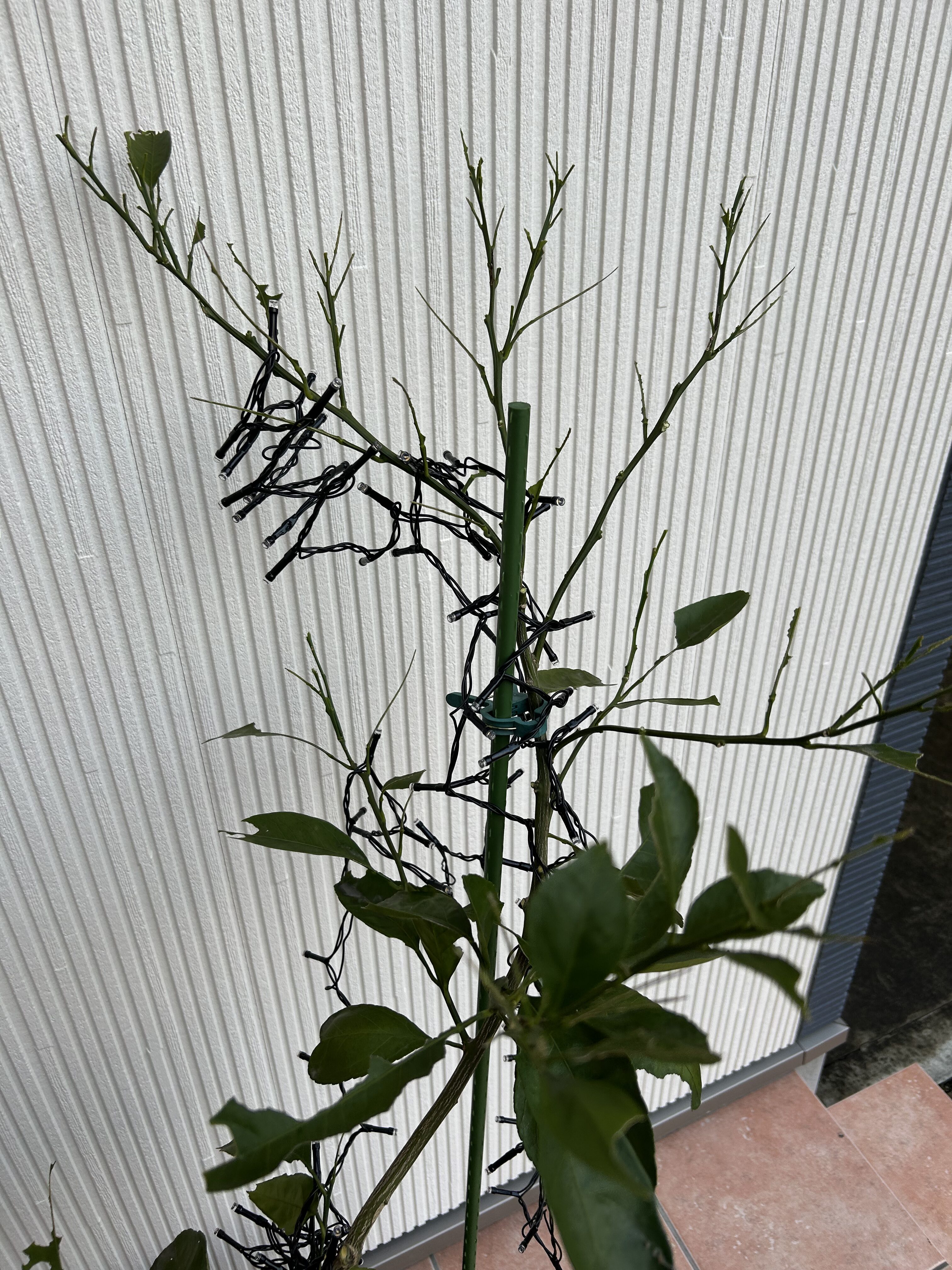 対策: お店(ホームセンター)で、温室育ちの新芽が出ている柑橘の苗木を確保するか、無理やり室内で新芽を吹かせる必要があります。